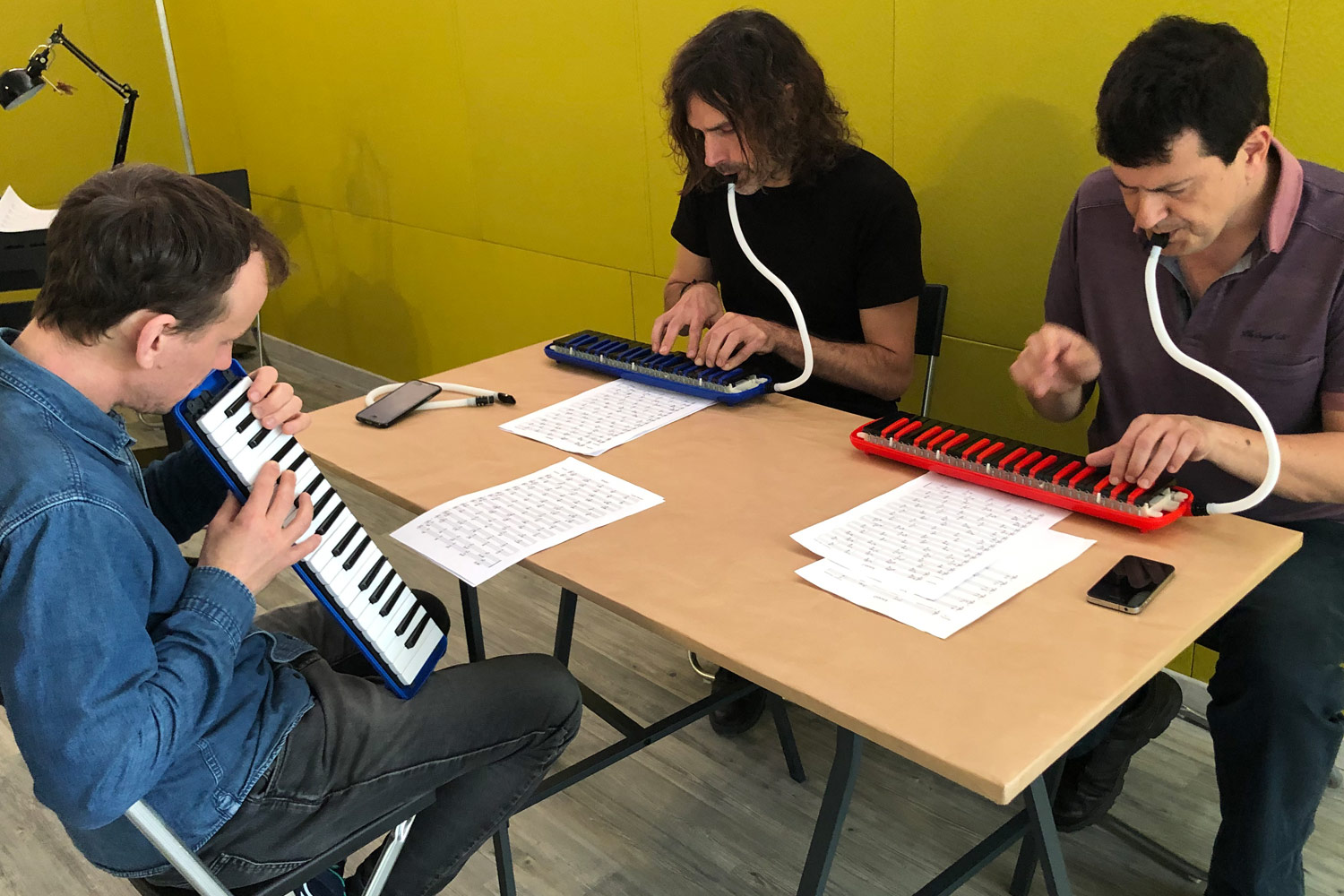 During the open rehearsal workshop of Knots, the composer and two musicians experimented with the sound, dynamics, tempo and pace of the composition.