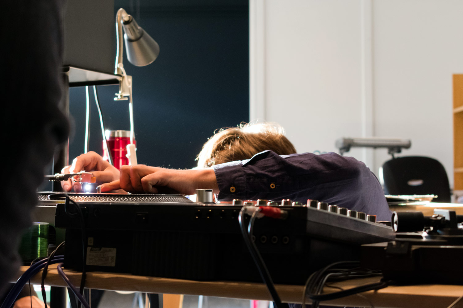 The Experimental Turntablism Workshop explored the use of turntables and vinyl records as experimental music tools. Participants broke and reassembled discs, added objects to them, and tampered with turntables. They also explored at the interdependence of audio, visual and tactile qualities of records and how these qualities can lead to new creative forms. The workshop did not require any prerequisite knowledge, skills or materials. Participants brought their records without restriction on the type of music to ruin and experiment with them. The workshop was presented by George Mizithras (MIZI).